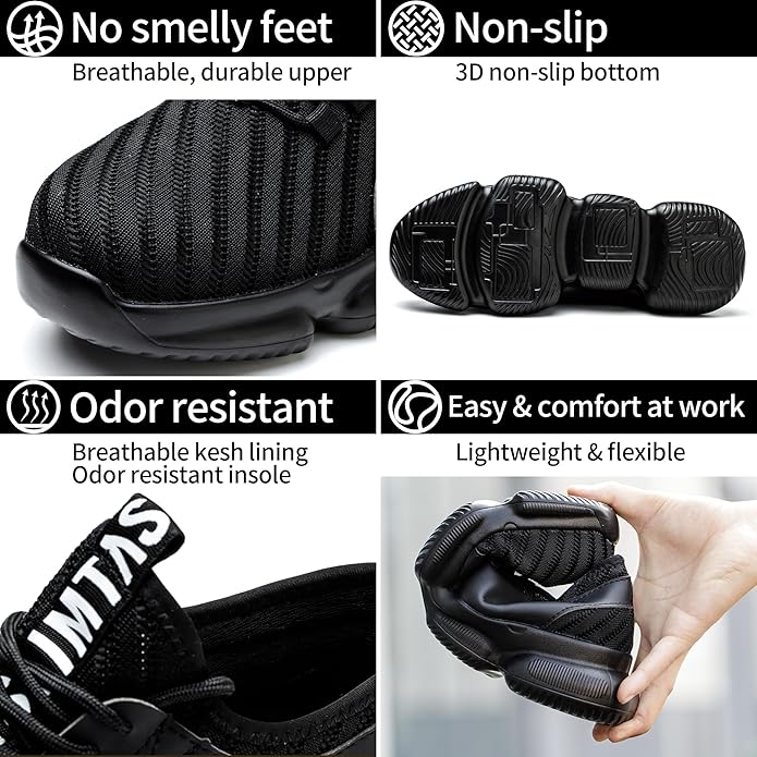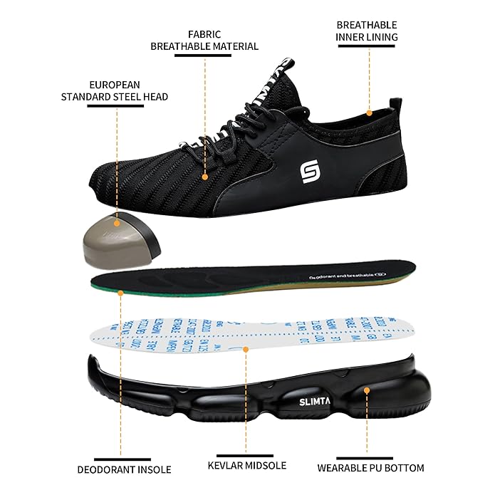 SLIMTA® Safety Shoes for Men Women Steel Toe Boots Non-Slip Lightweight Breathable Sneakers Puncture Proof Protective Industrial Black Work Shoes