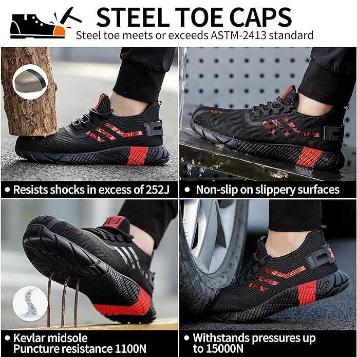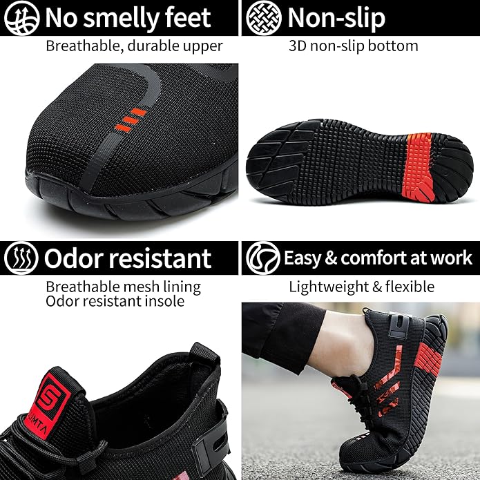 SLIMTA® Safety Shoes for Men Women Steel Toe Boots Non-Slip Lightweight Breathable Sneakers Puncture Proof Protective Industrial Black Work Shoes