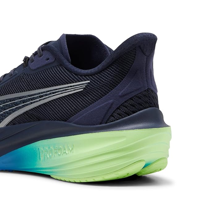 Elevate your athletic performance with the PUMA Men's Dazzler Running Sneakers, a versatile choice for daily runs, gym workouts, and casual outings. These sneakers feature a breathable synthetic and mesh upper, ensuring your feet stay cool and comfortable during extended wear. The low-top design offers flexibility and freedom of movement, while the lace-up closure provides a secure fit. The lightweight EVA midsole delivers responsive cushioning, absorbing impact and reducing foot fatigue, making them ideal for various activities. The durable rubber outsole offers excellent traction on multiple surfaces, enhancing stability and confidence with every step. Designed with a regular fit and neutral pronation support, these sneakers cater to a wide range of foot types and running styles. Aesthetically, the Dazzler sneakers boast a sleek silhouette complemented by subtle PUMA branding, adding a touch of style to your athletic wardrobe. The combination of functionality and fashion makes them a reliable choice for those who value performance without compromising on appearance. Easy to clean and maintain, these sneakers are built to withstand the demands of your active lifestyle. Whether you're hitting the track, heading to the gym, or enjoying a casual day out, the PUMA Men's Dazzler Running Sneakers provide the comfort, support, and style you need to keep moving forward.