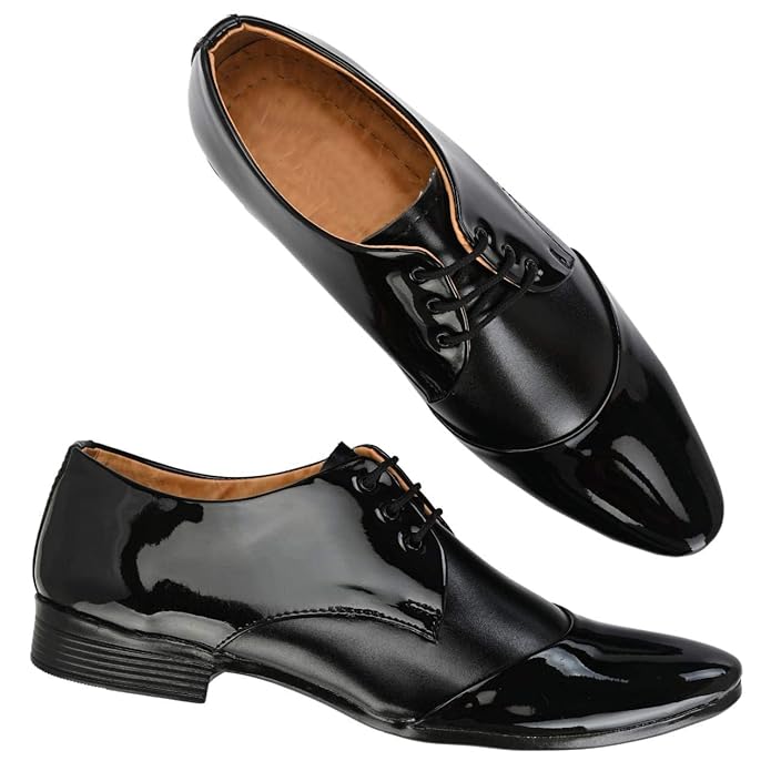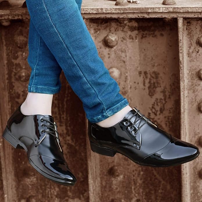 DE LOYON Men's Patent Leather Derby Formal Shoes
