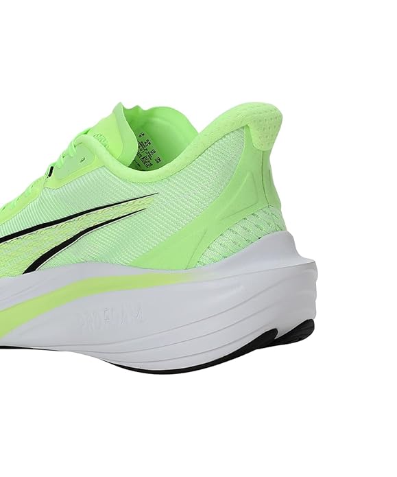 Elevate your athletic performance with the PUMA Men's Dazzler Running Sneakers, a versatile choice for daily runs, gym workouts, and casual outings. These sneakers feature a breathable synthetic and mesh upper, ensuring your feet stay cool and comfortable during extended wear. The low-top design offers flexibility and freedom of movement, while the lace-up closure provides a secure fit. The lightweight EVA midsole delivers responsive cushioning, absorbing impact and reducing foot fatigue, making them ideal for various activities. The durable rubber outsole offers excellent traction on multiple surfaces, enhancing stability and confidence with every step. Designed with a regular fit and neutral pronation support, these sneakers cater to a wide range of foot types and running styles. Aesthetically, the Dazzler sneakers boast a sleek silhouette complemented by subtle PUMA branding, adding a touch of style to your athletic wardrobe. The combination of functionality and fashion makes them a reliable choice for those who value performance without compromising on appearance. Easy to clean and maintain, these sneakers are built to withstand the demands of your active lifestyle. Whether you're hitting the track, heading to the gym, or enjoying a casual day out, the PUMA Men's Dazzler Running Sneakers provide the comfort, support, and style you need to keep moving forward.